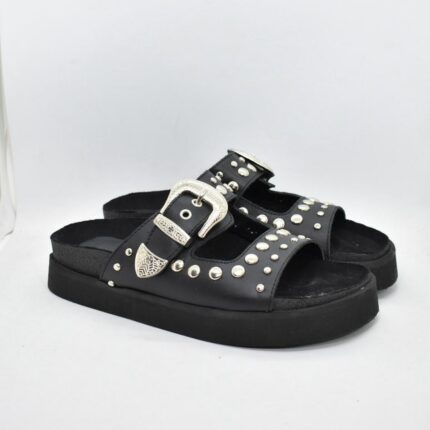 Birk de gamuzon con detalle de dos tiras cruzadas envolventes , plantilla conformada para un calce perfecto y super comodo , base de goma antideslizante , tachas metalicas laterales que le dan un toque de moda a un modelo clasico . Son ideales para combinar con shorts , bermudas o vestidos . Marca Viamo