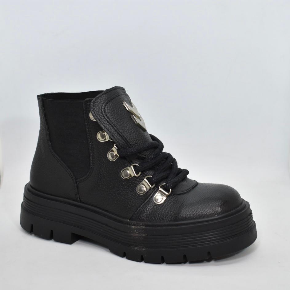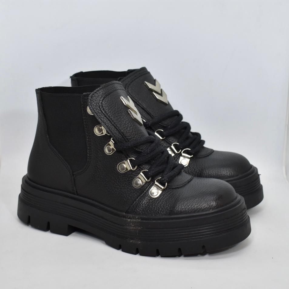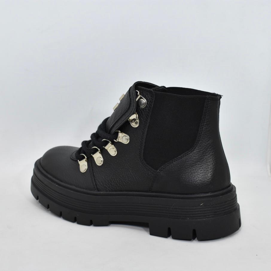 Borcego corto de cuero con detalle de aplique en lengüeta y base de goma de 4 cm de alto. Super cómodas y cancheras para todos los días! Marca INTREPIDAS.
