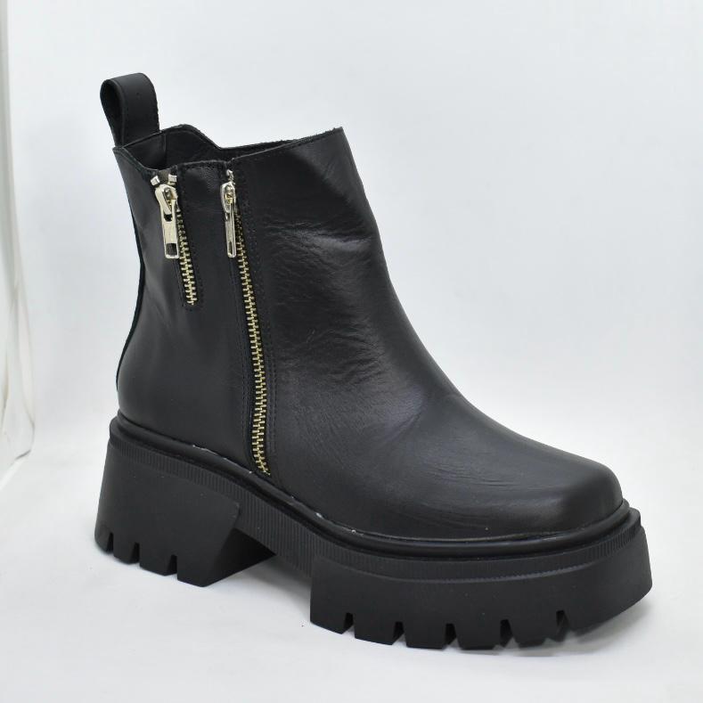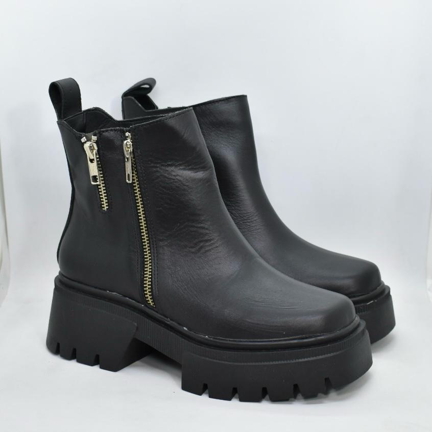 Bota caña corta de cuero, con detalles de cierres laterales, punta cuadrada y base de goma con plataforma de 4 cm y taco de 5,5 cm de alto. ¡Un modelo super clásico y canchero para usar con todos tus looks!. Marca INTRÉPIDAS