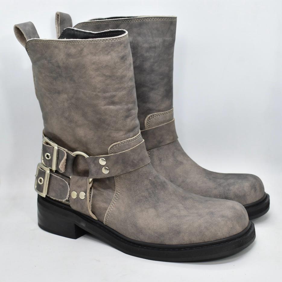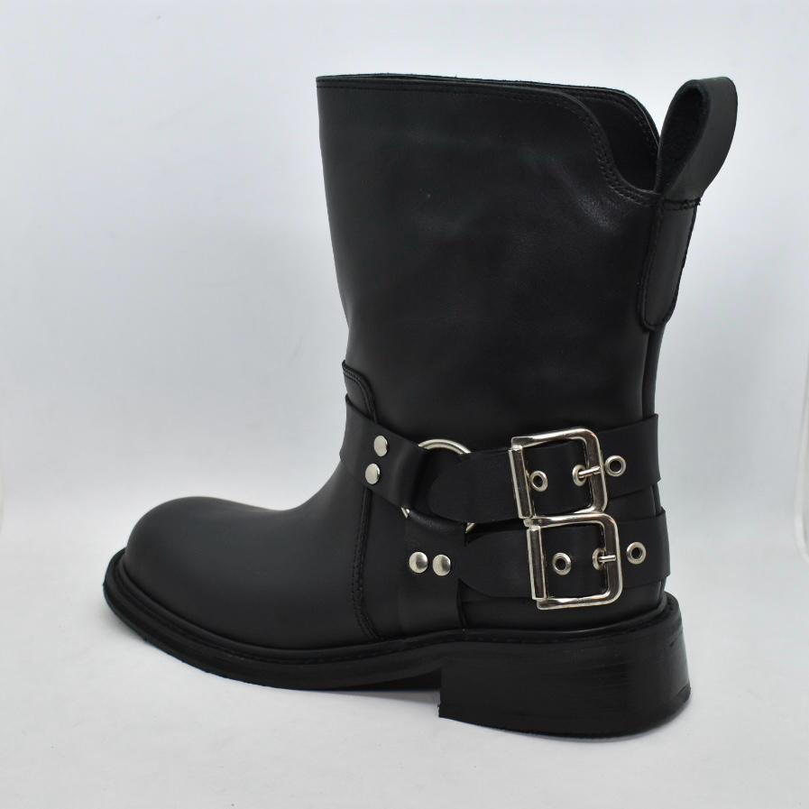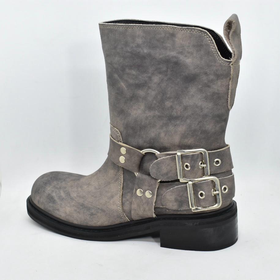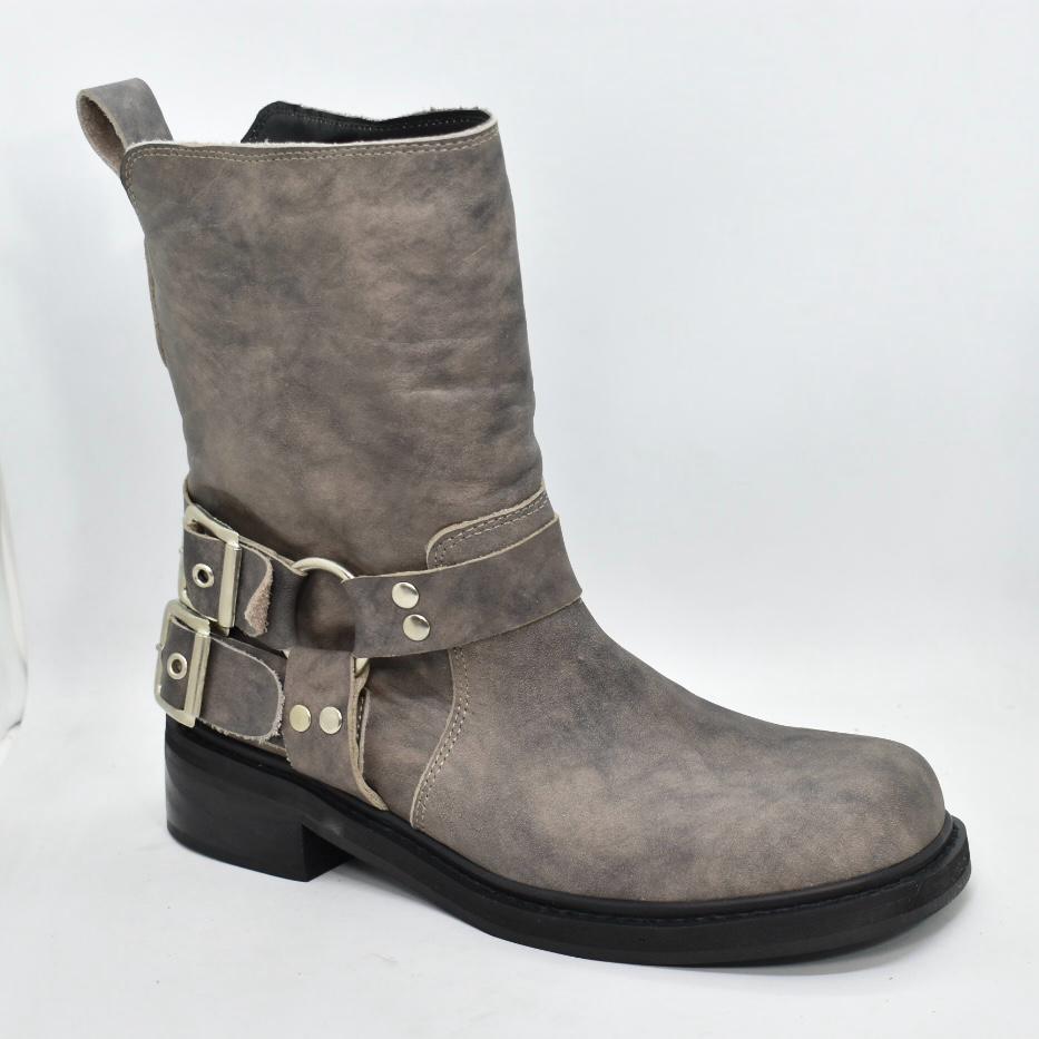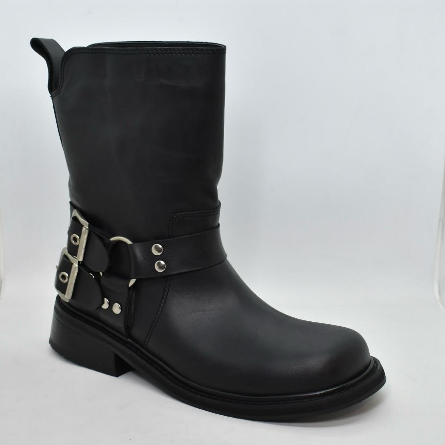 Botineta de cuero punta cuadrada, con doble cinturón con hebillas en talón y suela de goma con taco foliado bajo de 3 cm de alto. Incluilas en tus looks diarios para un resultado cómodo y moderno! Marca INTREPIDAS.