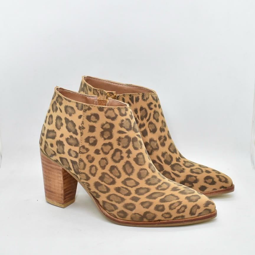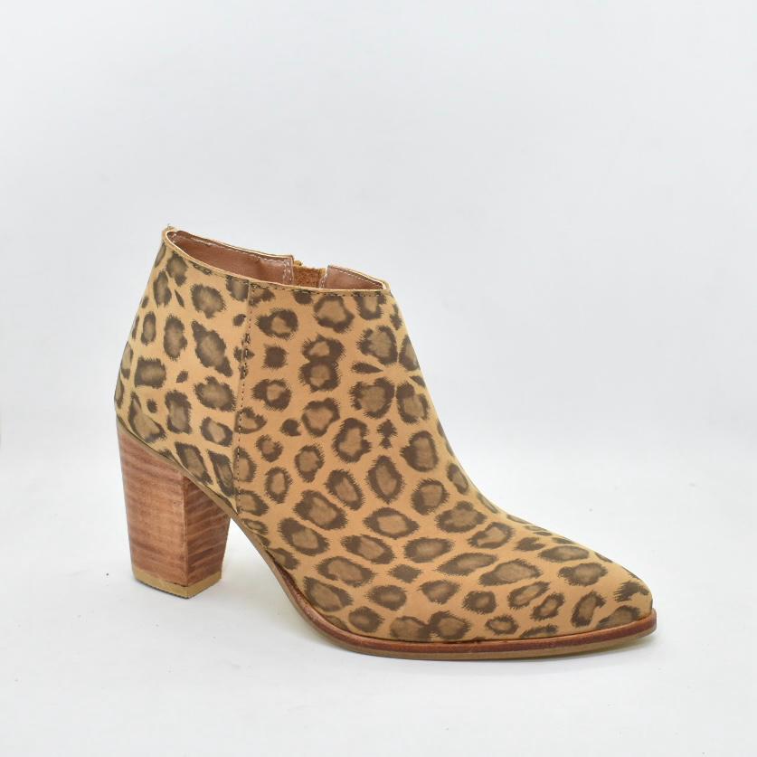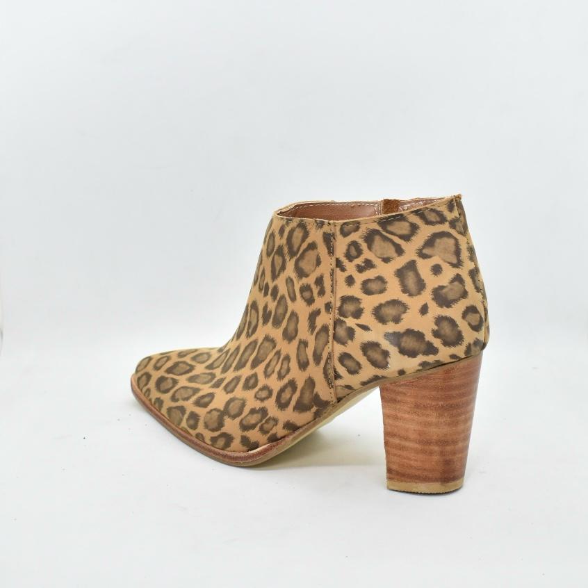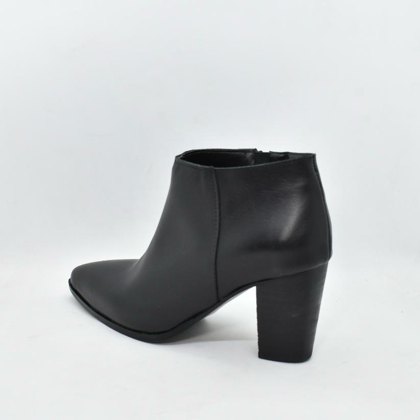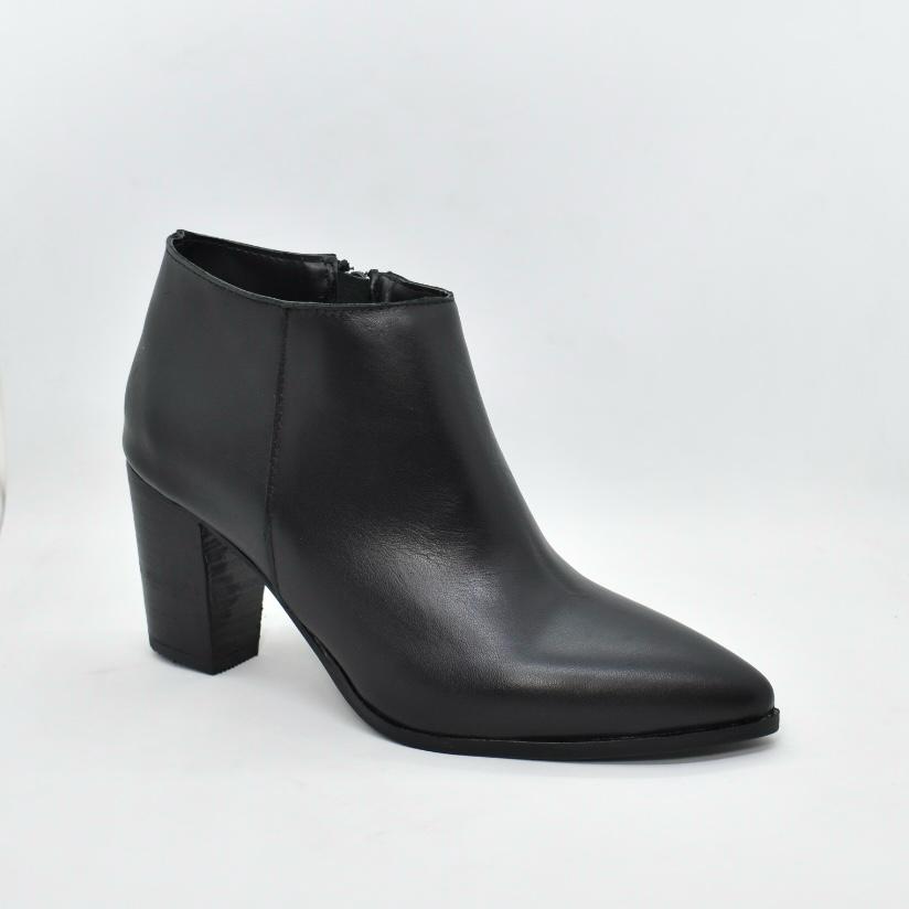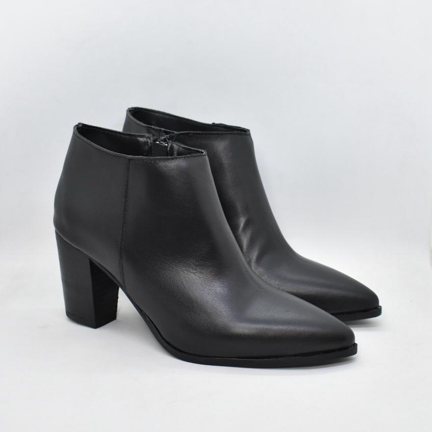 Botín corto al tobillo de cuero en punta con taco folia de 7,5 cm de alto. Un clásico que te va con todos tus looks! Marca CANELA.