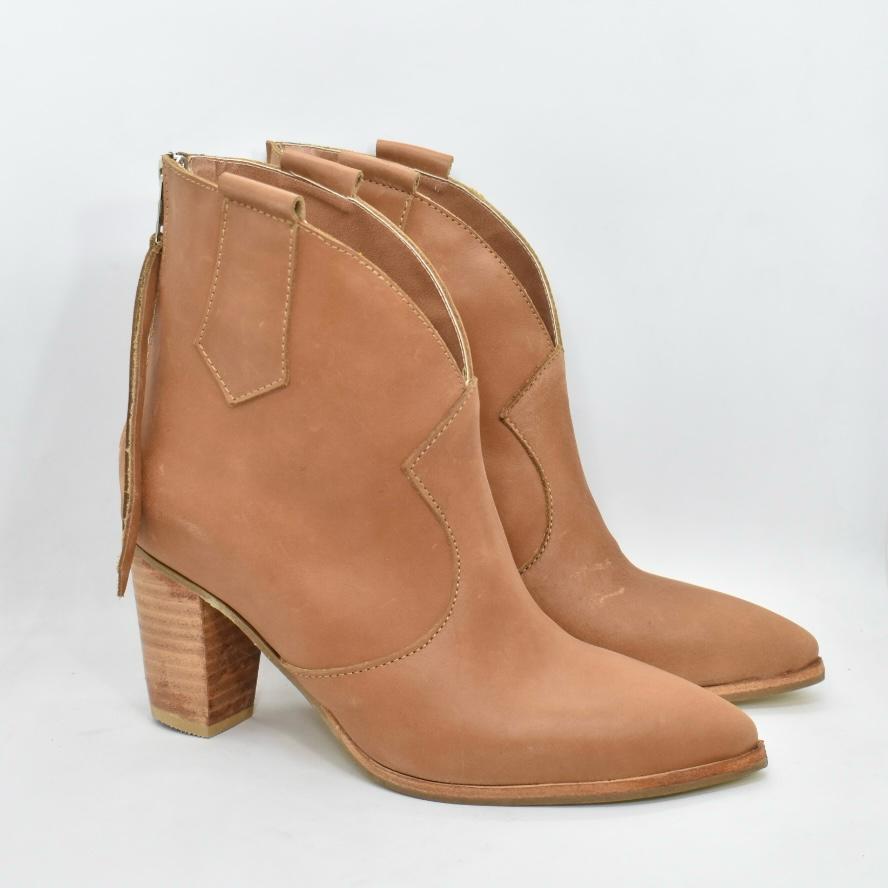 Botineta de cuero en punta con cierre en talón, escotada en frente de caña y tiene taco ancho de folia de 7,5 cm. Divinas, ideales para estilizar tus looks diarios! Marca CANELA.