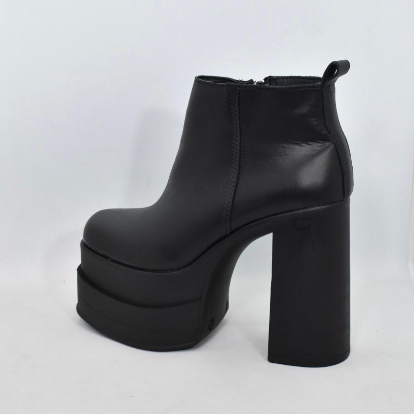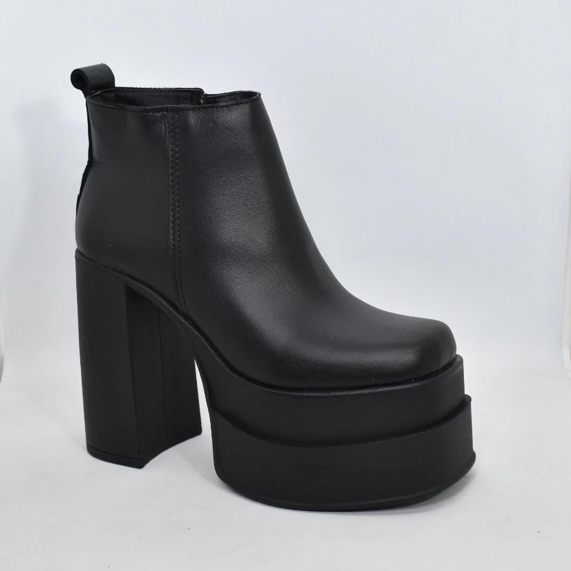 Botineta de cuero, tiene doble plataforma de goma tr de 6 cm de alto y taco ancho de 12 cm de alto. Tienen la altura ideal para estilizar tus looks de noche! Marca INTREPIDAS.