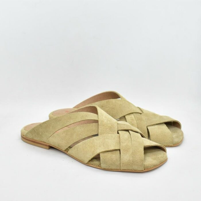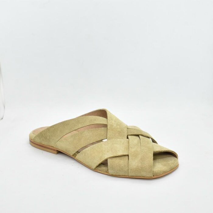 Sandalia de gamuza con diseño trenzado tipo mule, con punta cuadrada y base suela con antideslizante. ¡Perfecto para el día a día o para acompañarte en tus paseos de verano! Marca ALBANY