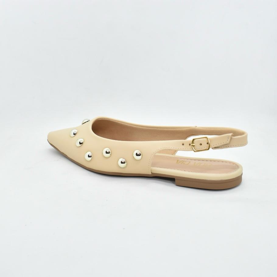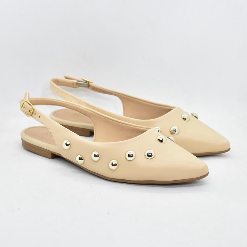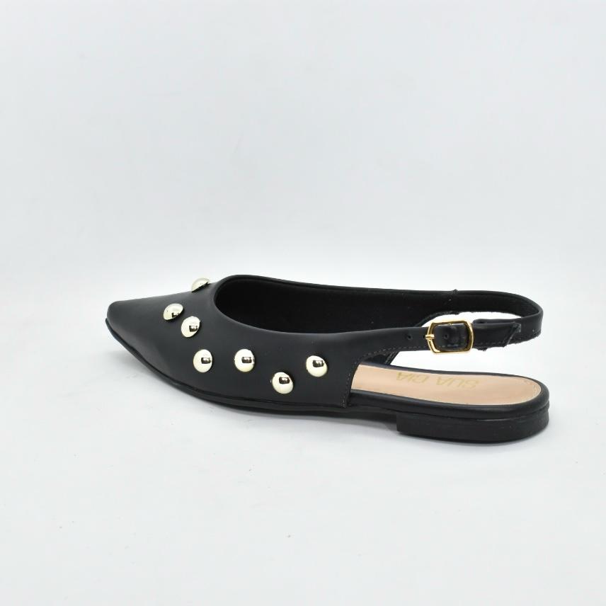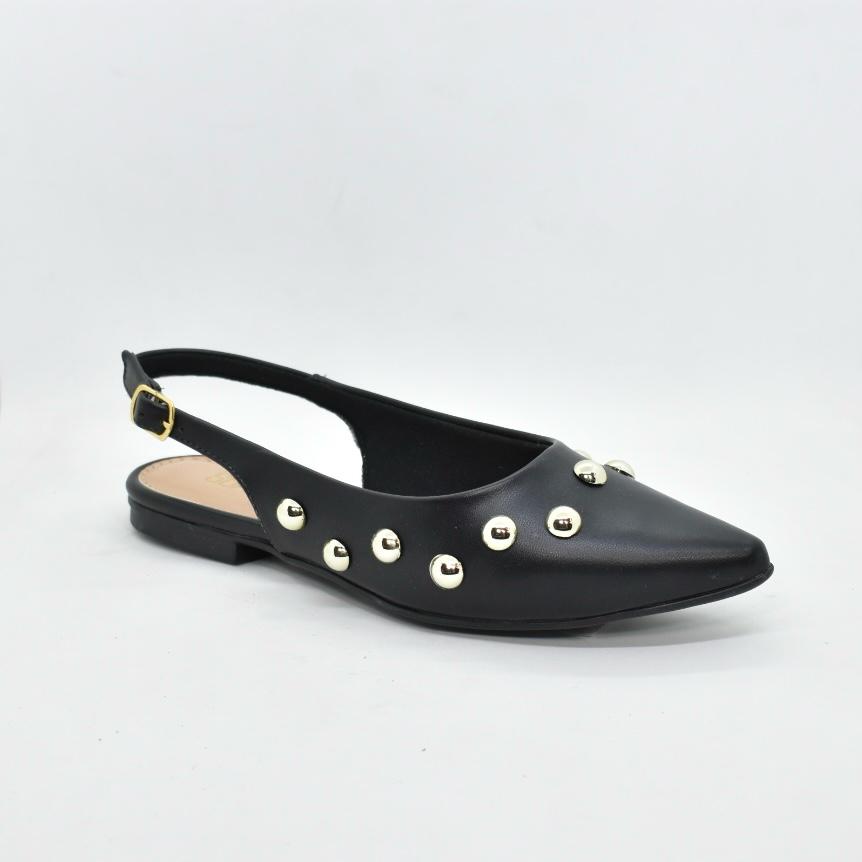 Chatita punta fina de cuero sintético PU de excelente calidad, con tachas doradas, pulsera con hebilla ajustable para un mejor calce, plantilla acolchada y base de goma. ¡Un modelo que marca tendencia y realza tu estilo! Marca SUA CIA