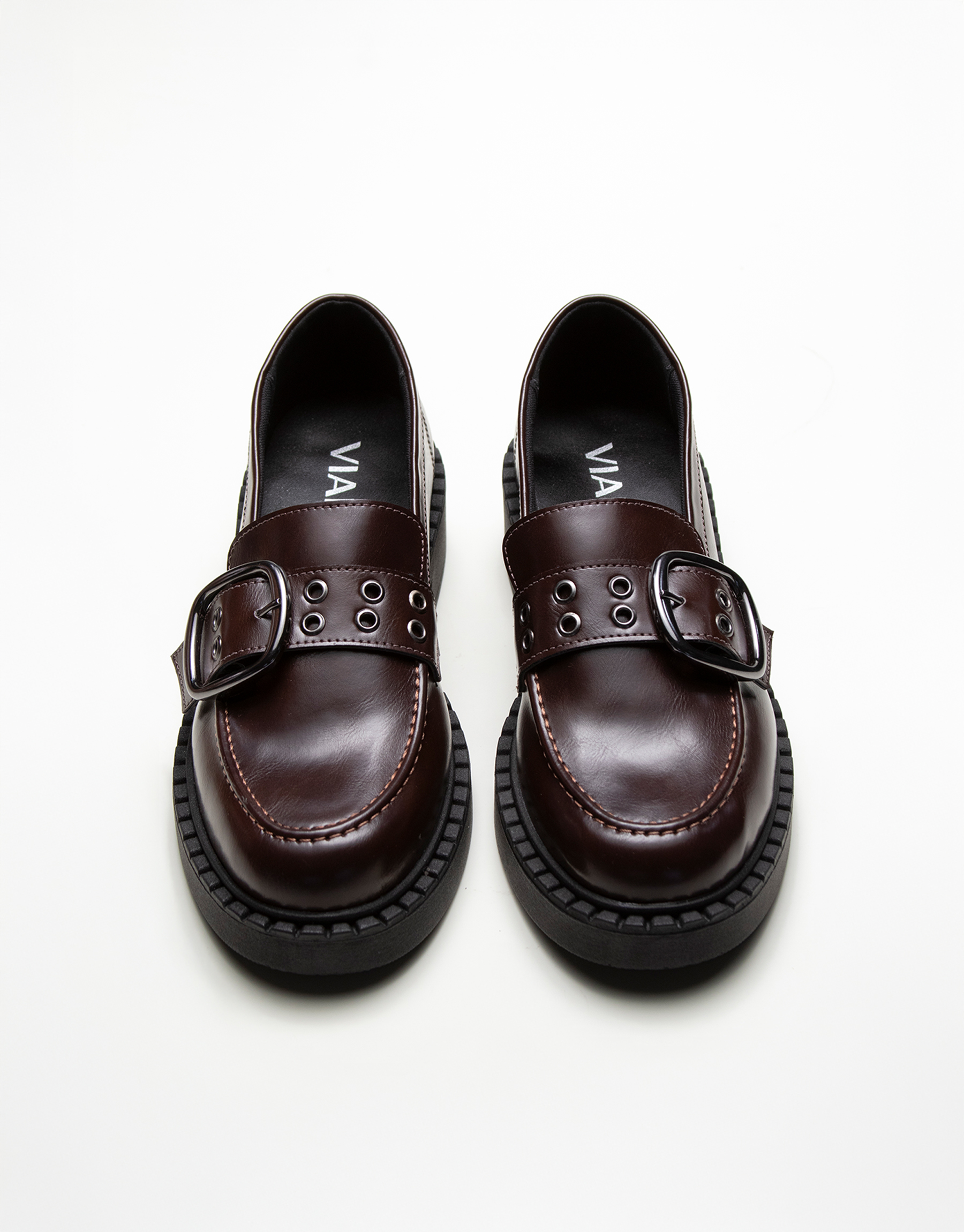 Mocasin en cuero sintetico , detalle de vincha con ojalillos y hebilla , base de goma de 4 cm , son ideales para un uso diario , relajada y elegante ! Marca Viamo .