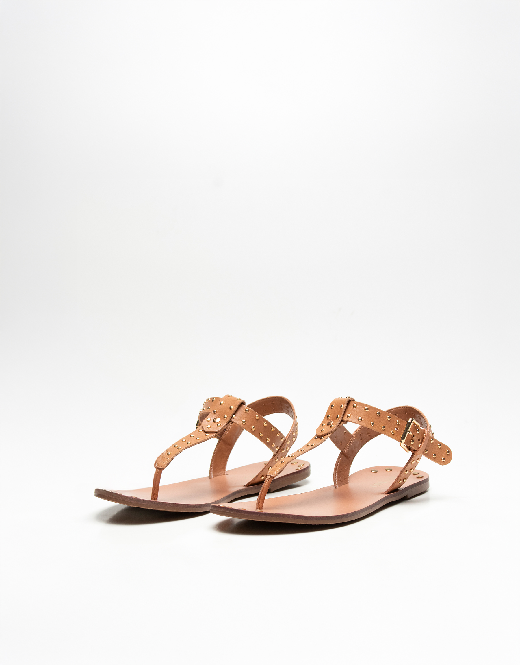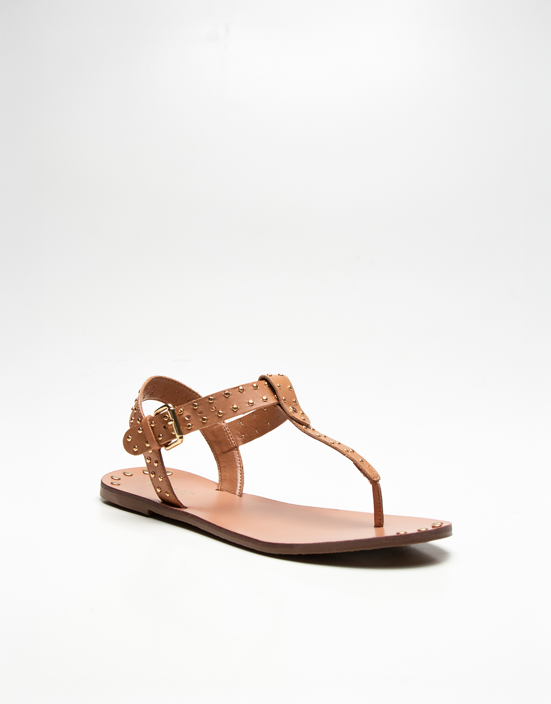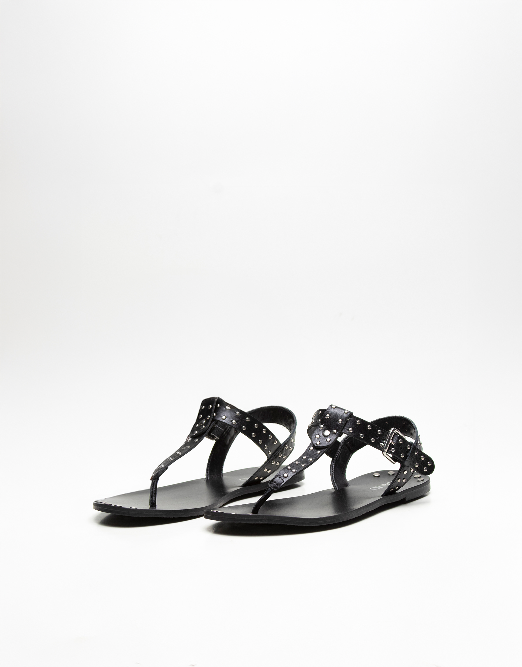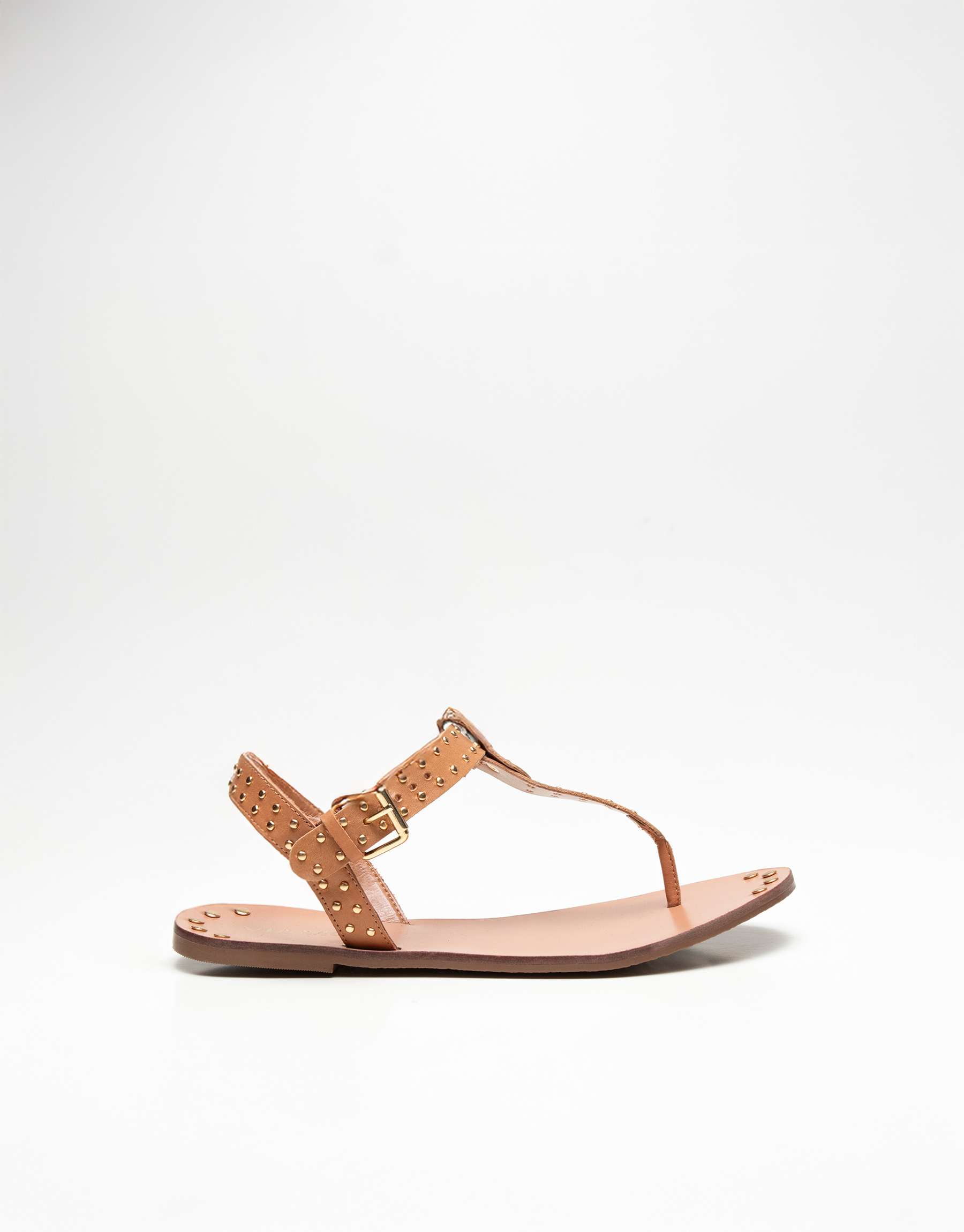 Ojota de cuero con tachas y hebilla regulable al tobillo. Base de cuero flexible de 1cm. Un modelo canchero, súper fresco y cómodo para usar a diario en verano! Marca: VIAMO