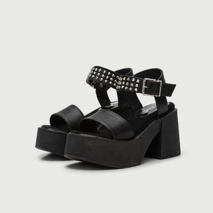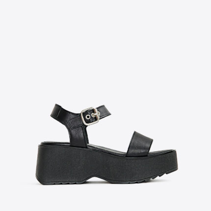 Sandalia de cuero con tiras anchas y hebillas metálicas ajustables, diseño de ojales decorativos, y una plataforma de goma eva de 5 cm de alto. ¡Perfectas para usar con tus looks urbanos! Marca INTREPIDAS