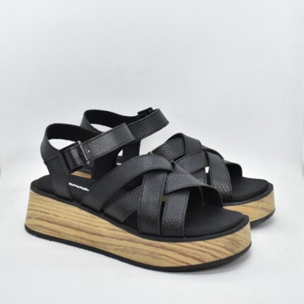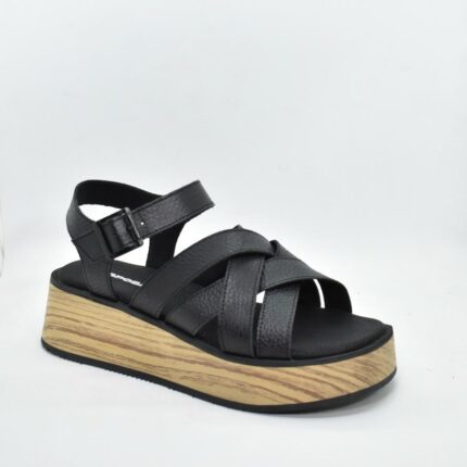 Sandalia de cuero texturado reptil, capellada boca de pez y pulsera regulable en tobillo. Base es de 9 cm y la plataforma de 5cm , son súper livianas! Un modelo ideal para las que buscan altura y comodidad. Marca: SPOSAMI
