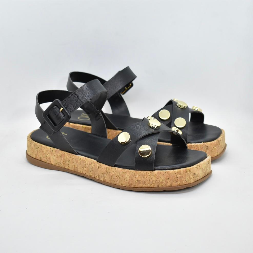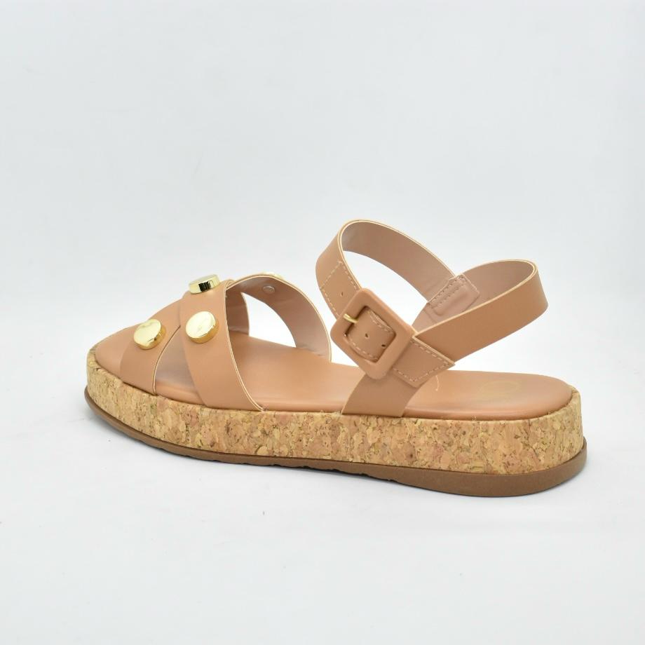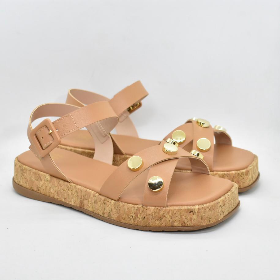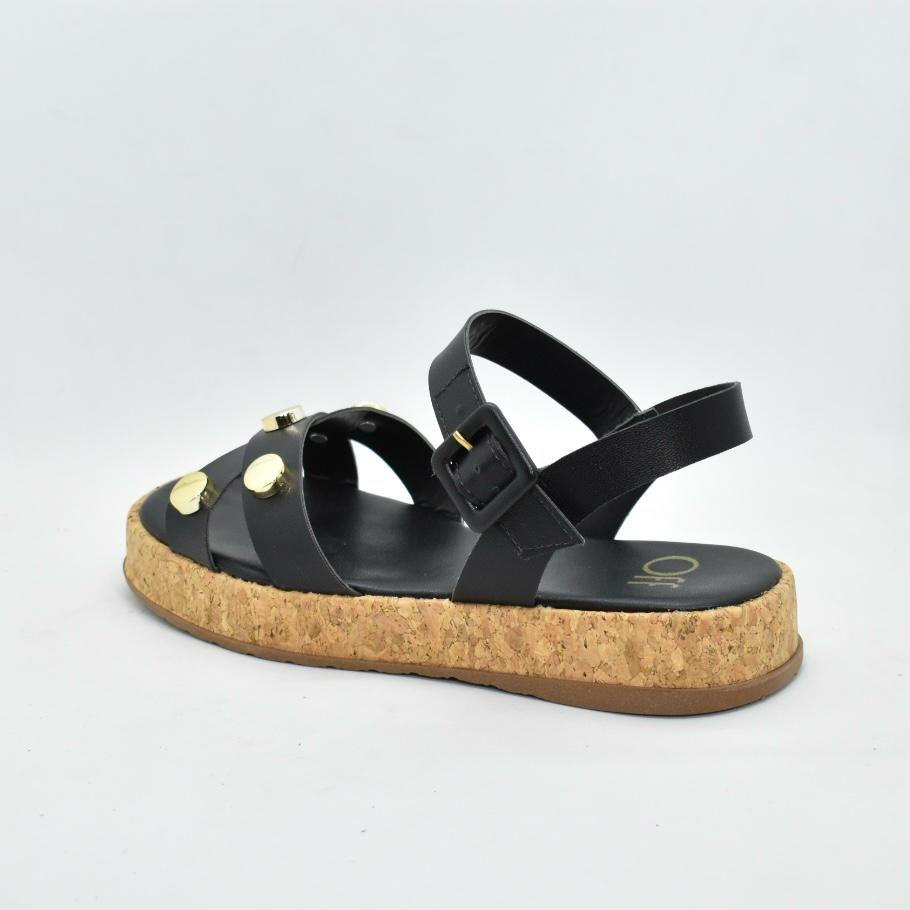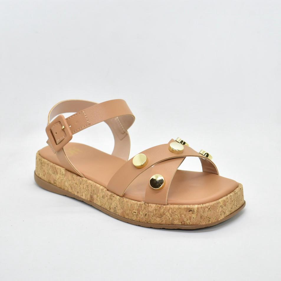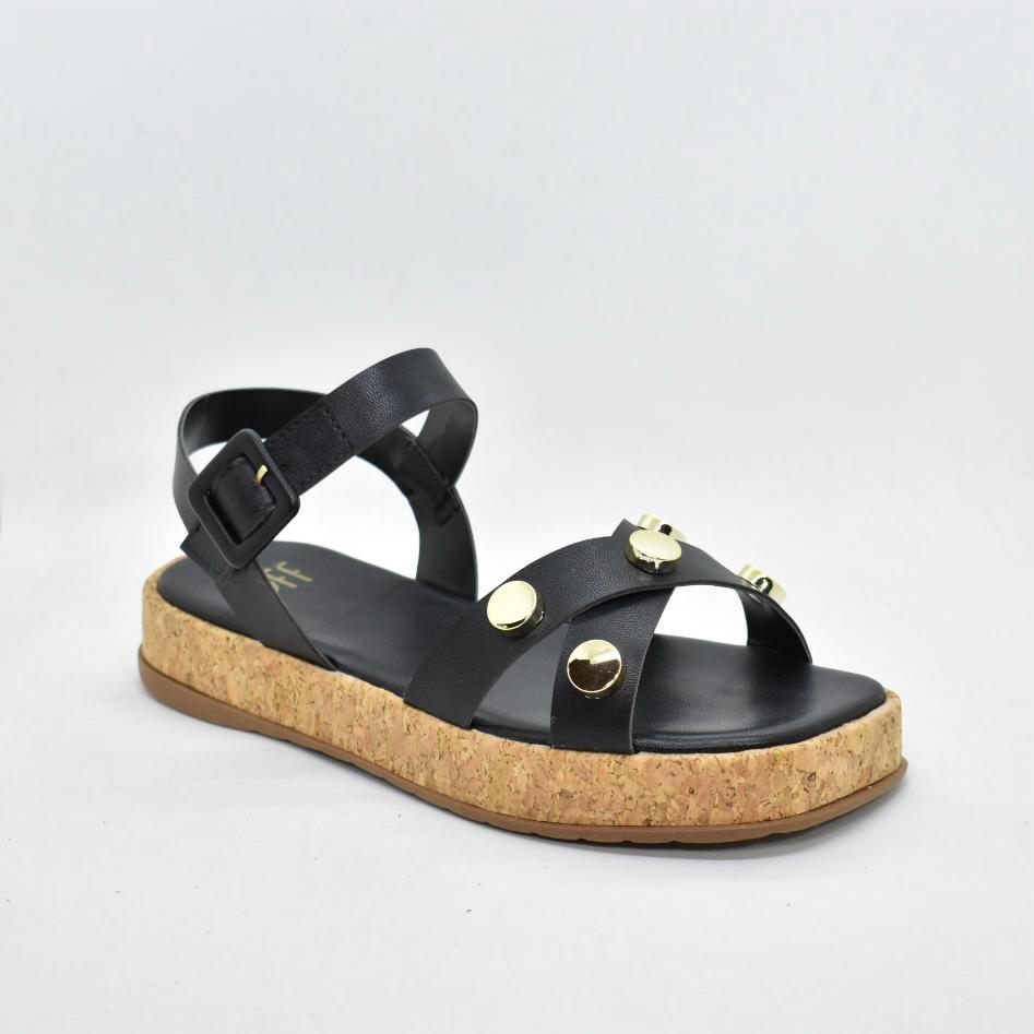 Sandalia de cuero sintético, con tiras cruzadas y hebilla regulable, base de corcho de 3cm. Ideales para combinar con tus looks esta temporada! Marca SUA CIA