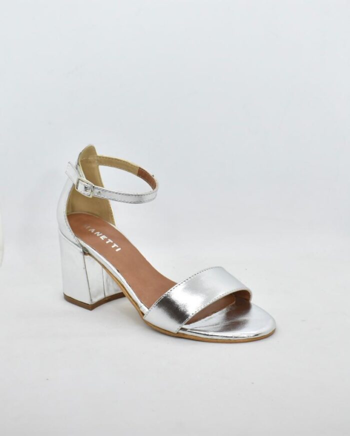 Sandalia con talón y pulsera taco medio de 7,5 cm de alto. Marca BRUNO MANETTI.