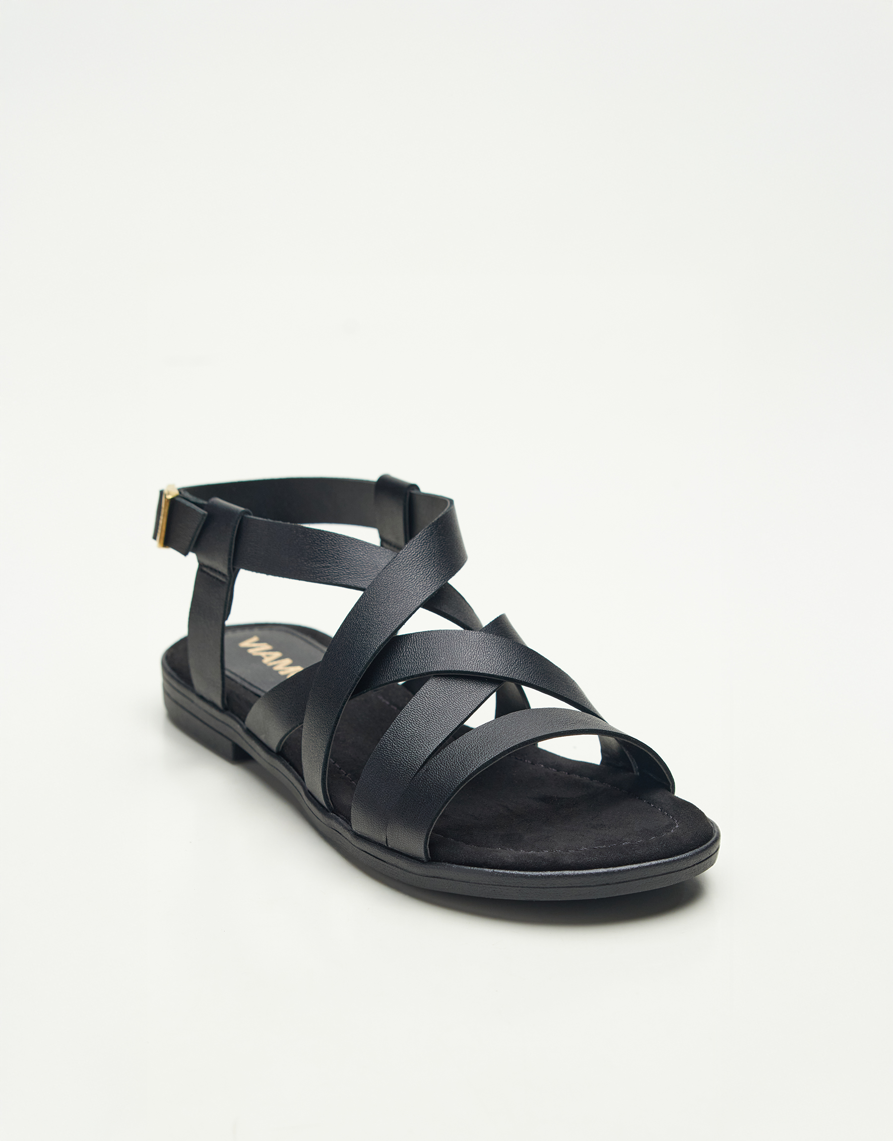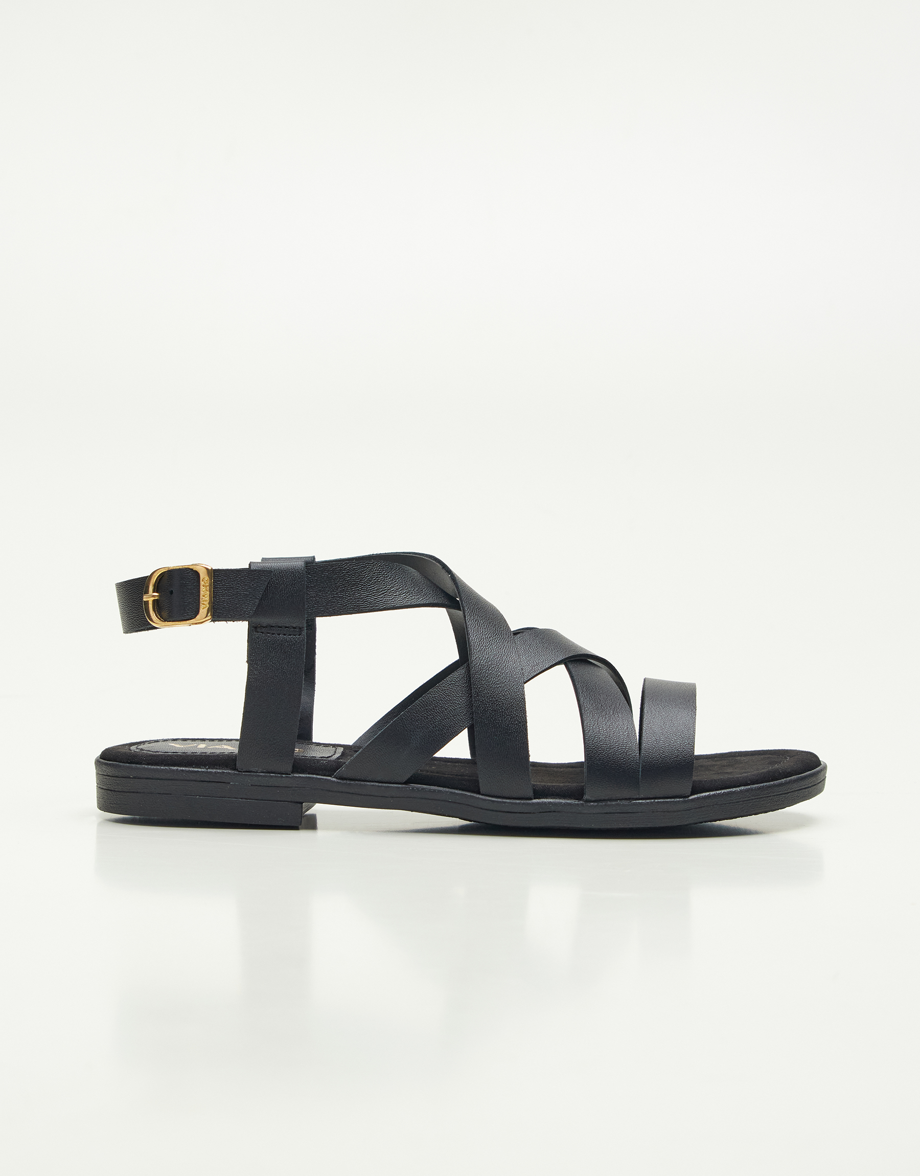 Sandalia de cuero , tiras cruzadas con hebilla regulable para un calce perfecto , suela de goma para un caminar seguro y cómodo , plantilla forrada textil . Taco bajo de 2cm . Un modelo clásico y relajado para usar con cualquier outfit básico . Marca Viamo