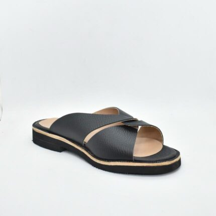Sandalia de PU con medio enfranque, puntera y talon descubierto. Capellada lisa metalizada y con base de goma. Marca Adeso