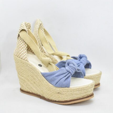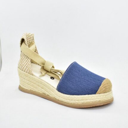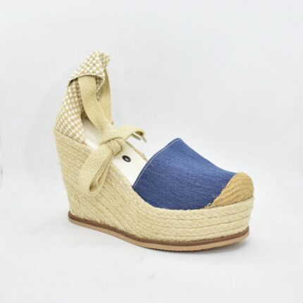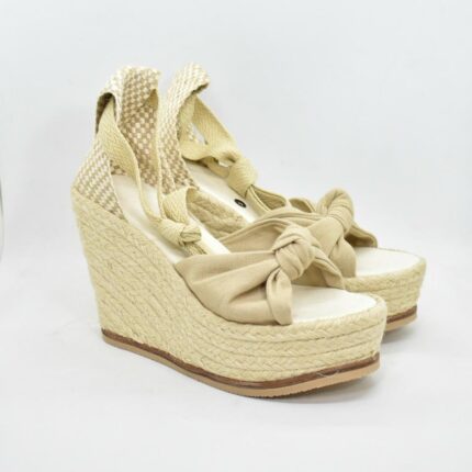 Sandalia taco chino de yute , con pulsera regulable combinada , capella de cuero soft con detalle de nudo bien envolvente , la base tiene una altura de 5 a 7 cm , son ideales para uso diario . Marca Viamo