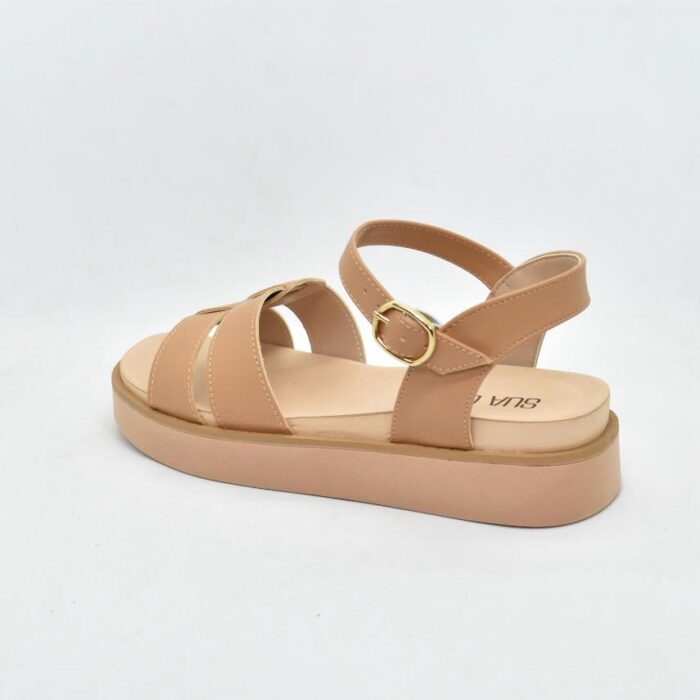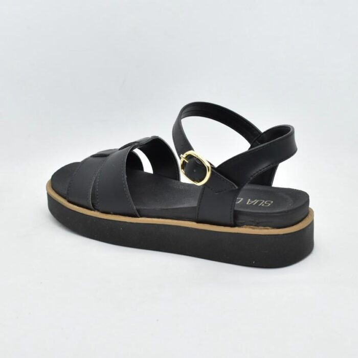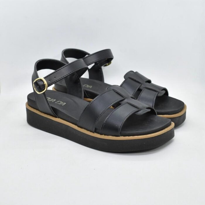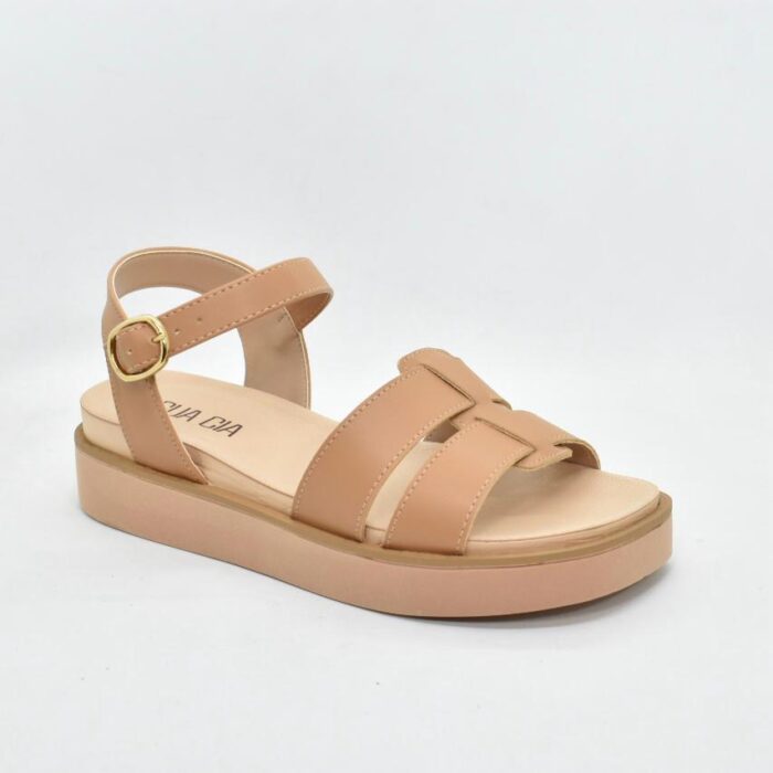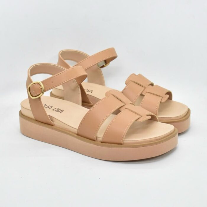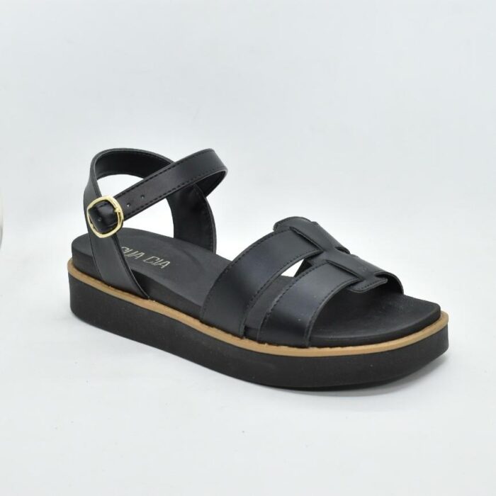 Sandalia romana de cuero sintético con pulsera regulable al tobillo. Punta cuadrada y base de goma de 4.5cm. Clásicas, súper cómodas, ideales para usar a diario! Marca: SUA CIA