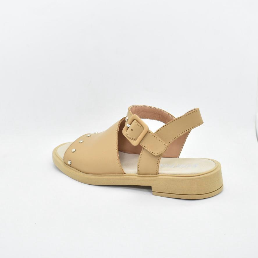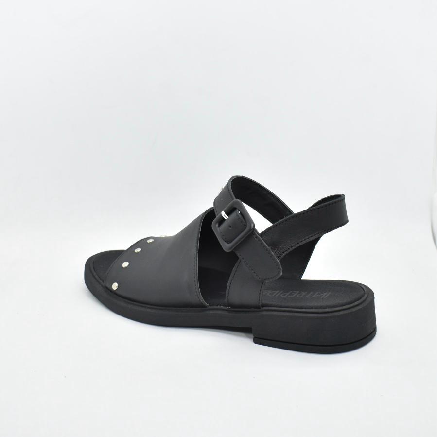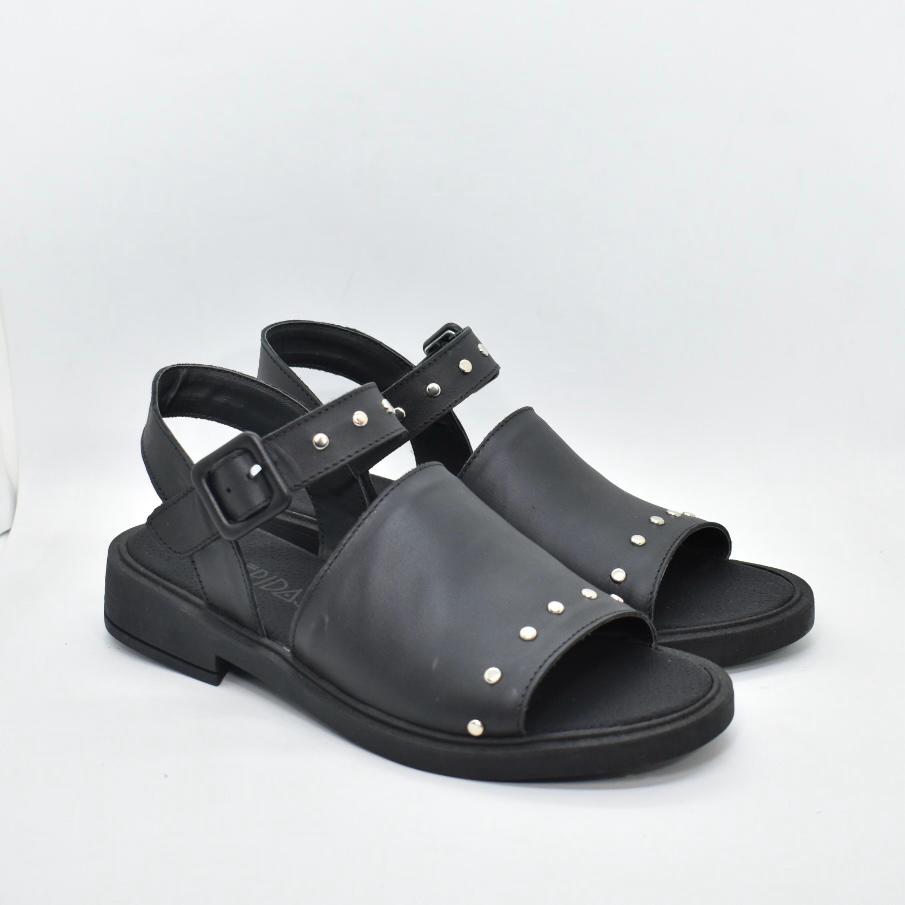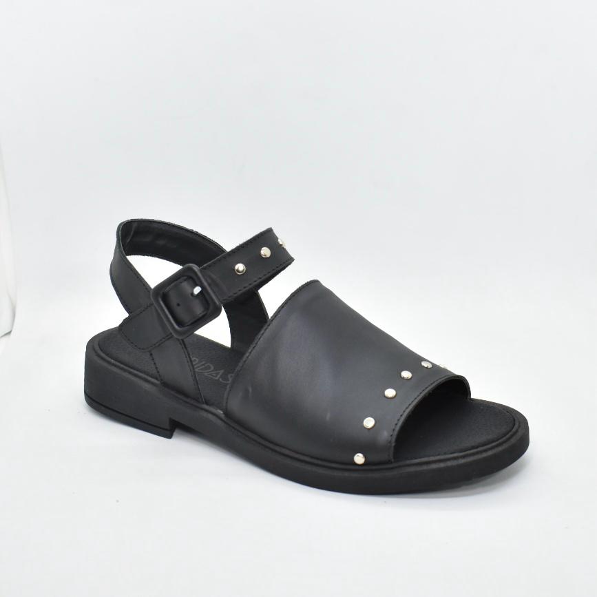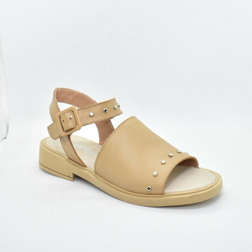 Sandalia de cuero faja ancha y pulsera con mini tachas plateadas. Tienen suela de goma con taco bajo de 3 cm de alto. Super versátiles y cómodas para todos los dias! Marca INTREPIDAS.