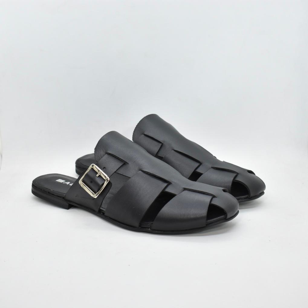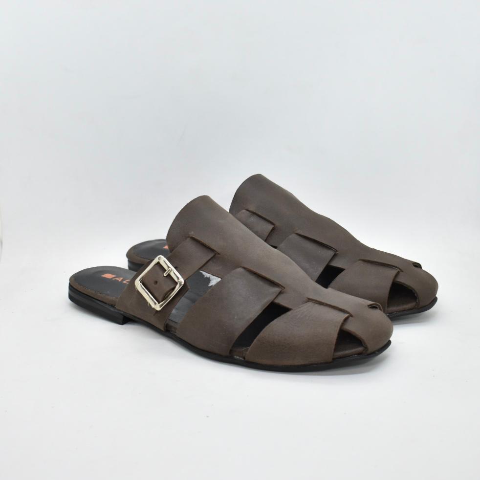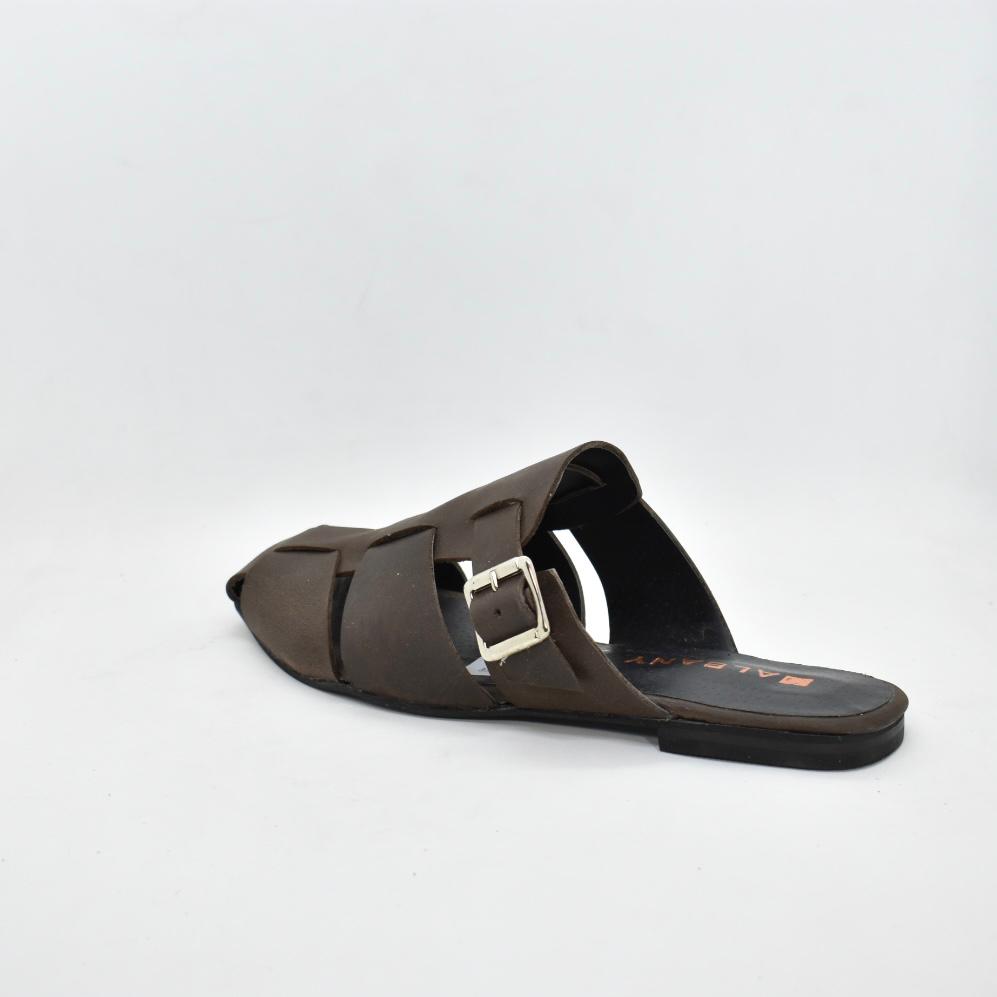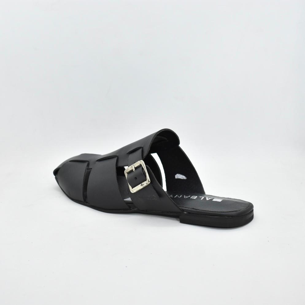 Sueco chato de cuero con tiras entrelazadas estilo mule y hebilla regulable, base suela y un taco de 1 cm de alto. ¡Ligeras, cómodas y un modelo que marca tendencia! Marca ALBANY