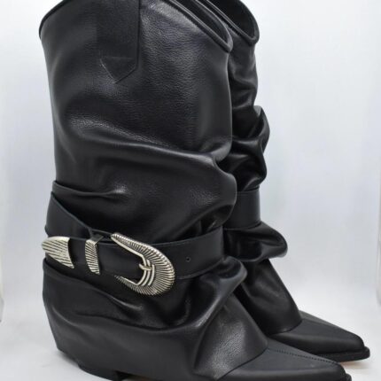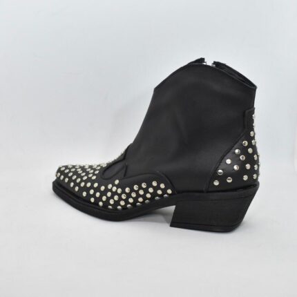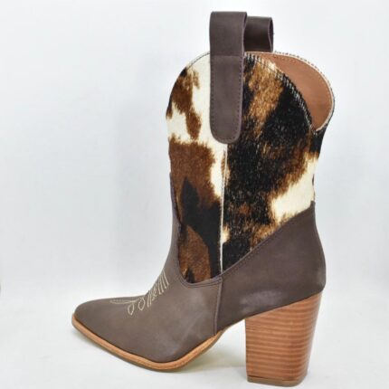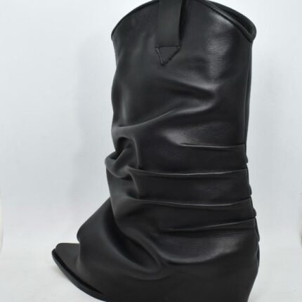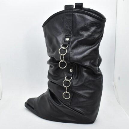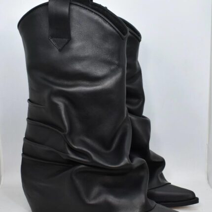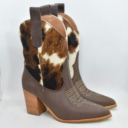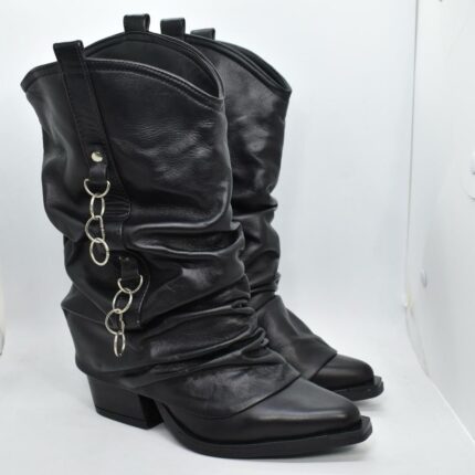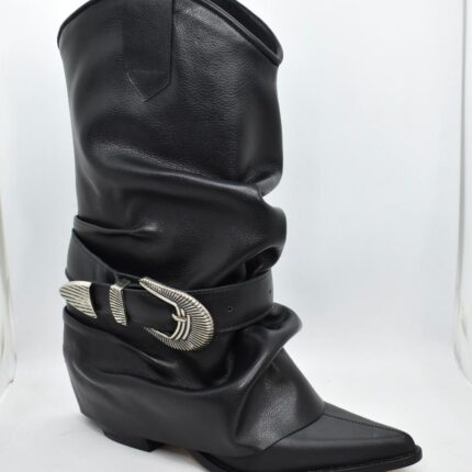 Texana de cuero 1/2 caña bordada de 25cm de largo, fondo de suela y taco foliado de 8 cm de alto. Marca BRUNO MANETTI.