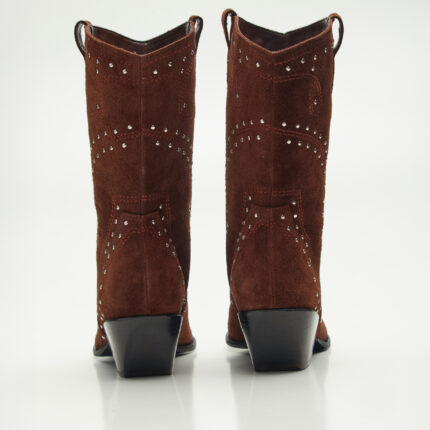 Texana de cuero de caña corta, con detalle de puntera metalizada y trenzado. Horma en punta, taco folia de 5cm y cierre en talón. Una bota súper canchera, hermosa para combinar con todos tu looks! Marca: NACHA
