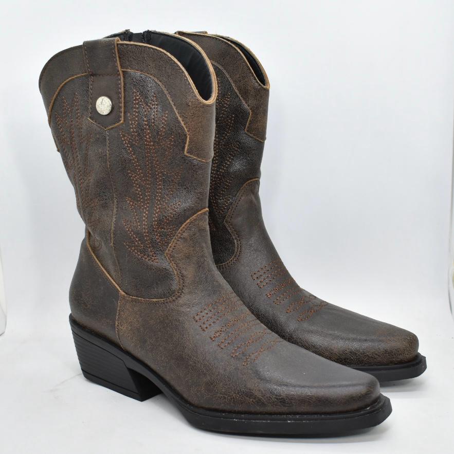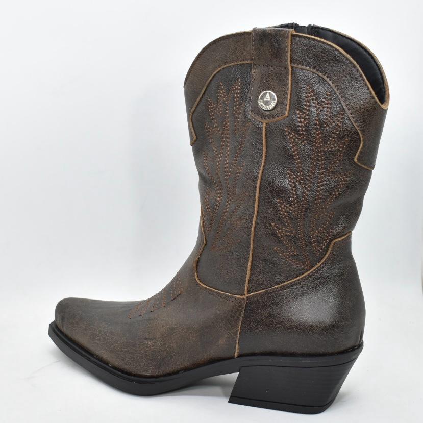 Texana corta de cuero con bordado al tono y suela de goma con taco de 5 cm de alto. Úsalas todo el año y en verano con tus looks cortos! Marca INTREPIDAS.