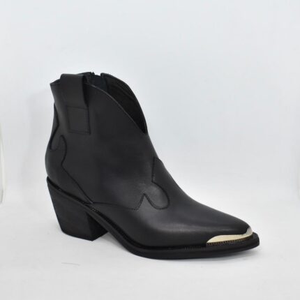 Texana corta de cuero, bordada y con cierre en el talón. Tiene taco de folia de 6 cm de alto. Un modelo básico que no te puede faltar!! Marca DE MAIO.