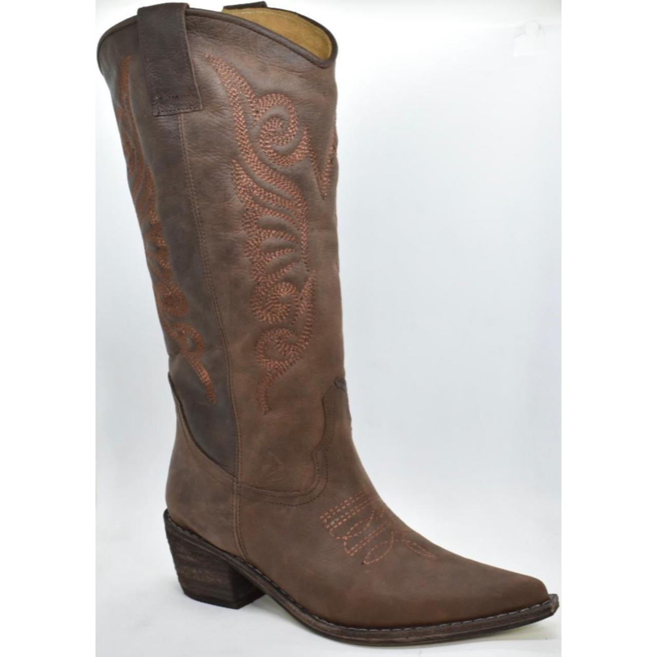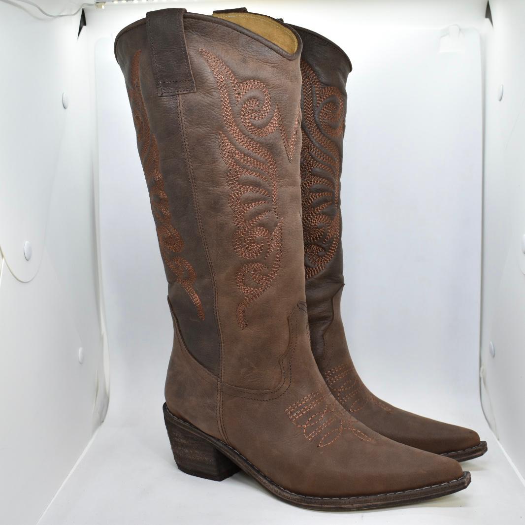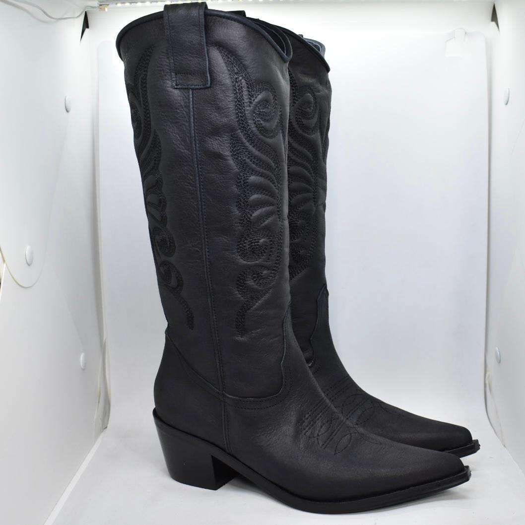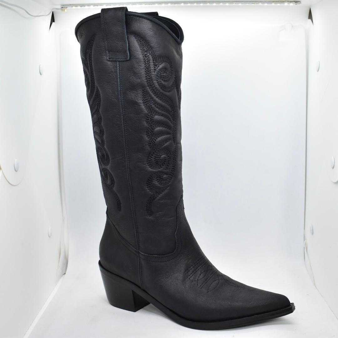 Texana 100% cuero, caña media con bordado a tono. Base de madera con media suela de goma antideslizante y taco folia de 5cm. Un clásico que no te puede faltar! Marca: GIANNI DI PAOLO