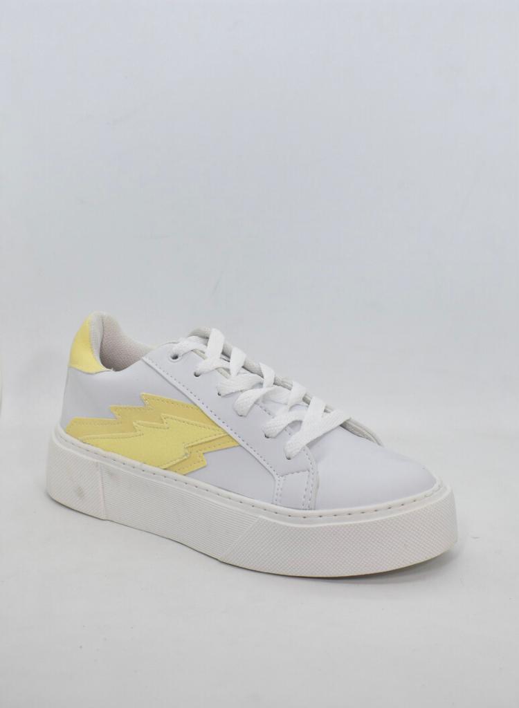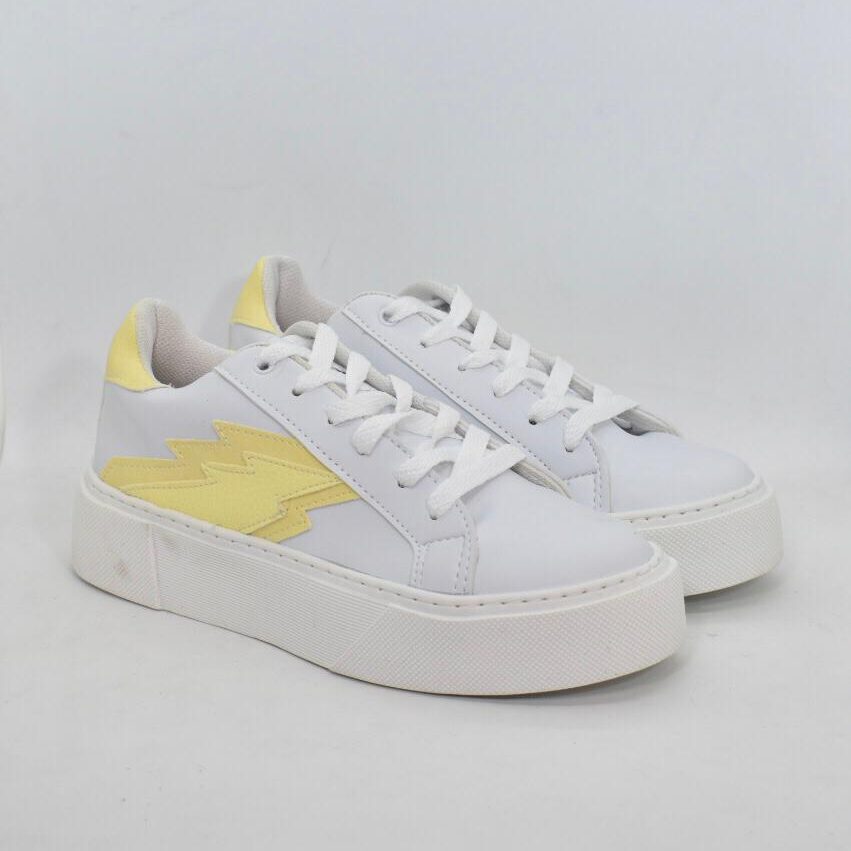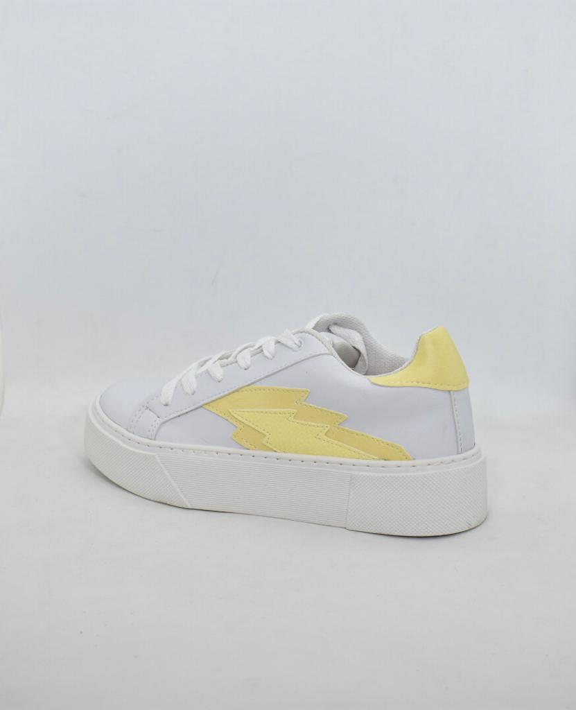 Zapatilla de cuero sintético combinada con detalle de rayo y base de goma de 3,5 cm. ¡Súper cómodas y originales! Marca INTREPIDAS.