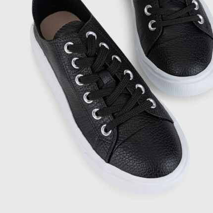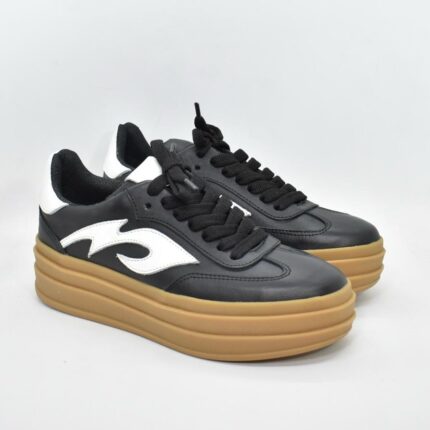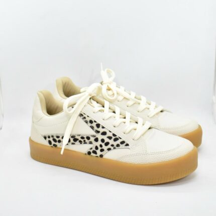 Zapatilla acordonada de cuero combinada con textil y base de goma de 3 cm de alto. Anímate a combinarlas con prendas semi formales para lograr un contraste que marca la diferencia en tus looks diarios! Marca INTREPIDAS.